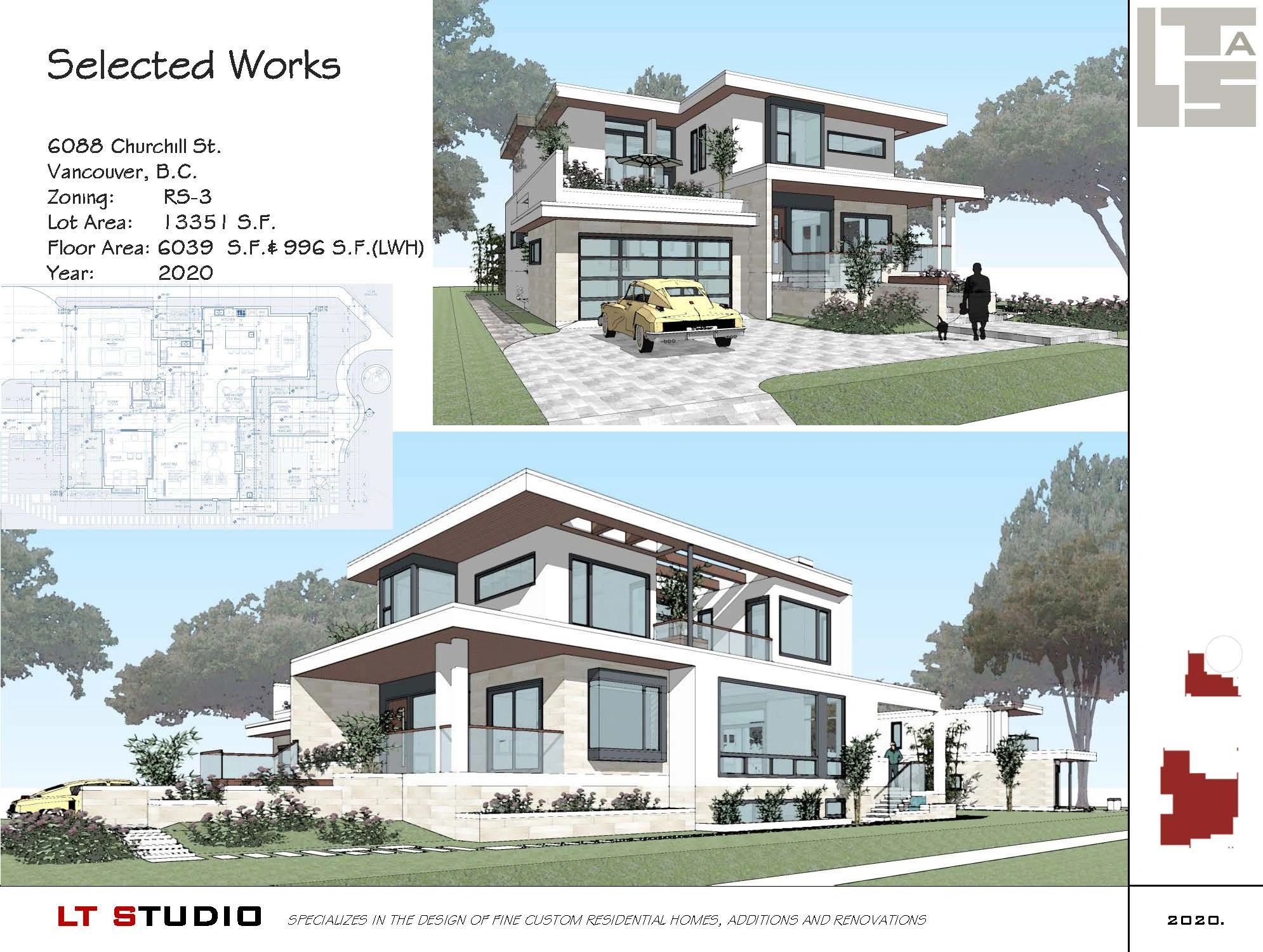 項目位於溫哥華西區一宗轉角地塊,西側街為主入口及車庫進入方向,南側臨側街,為建築可以南向展開設計提供了可能性,也體現了該地塊的獨特價值。主HOUSE在東側內院及南側方向設置了景觀疊落水景,與與主HOUSE戶外平台相連並延伸疊落至下沉的地下室景觀出口SUNKEN PATIO空間。形成了一個建築景觀一體化的有機建築形態,和戶外動線。東側後巷屋的東南角是棵獲得保護的大樹,因此設計形態佈局是以環抱大樹的L型建築形體組織佈局。總體建築設置了多處屋頂陽光露台,為住戶提供了充足戶外休閒空間,同時也構成了建築外部空間虛實變化、錯落有致的獨特的建築形態。