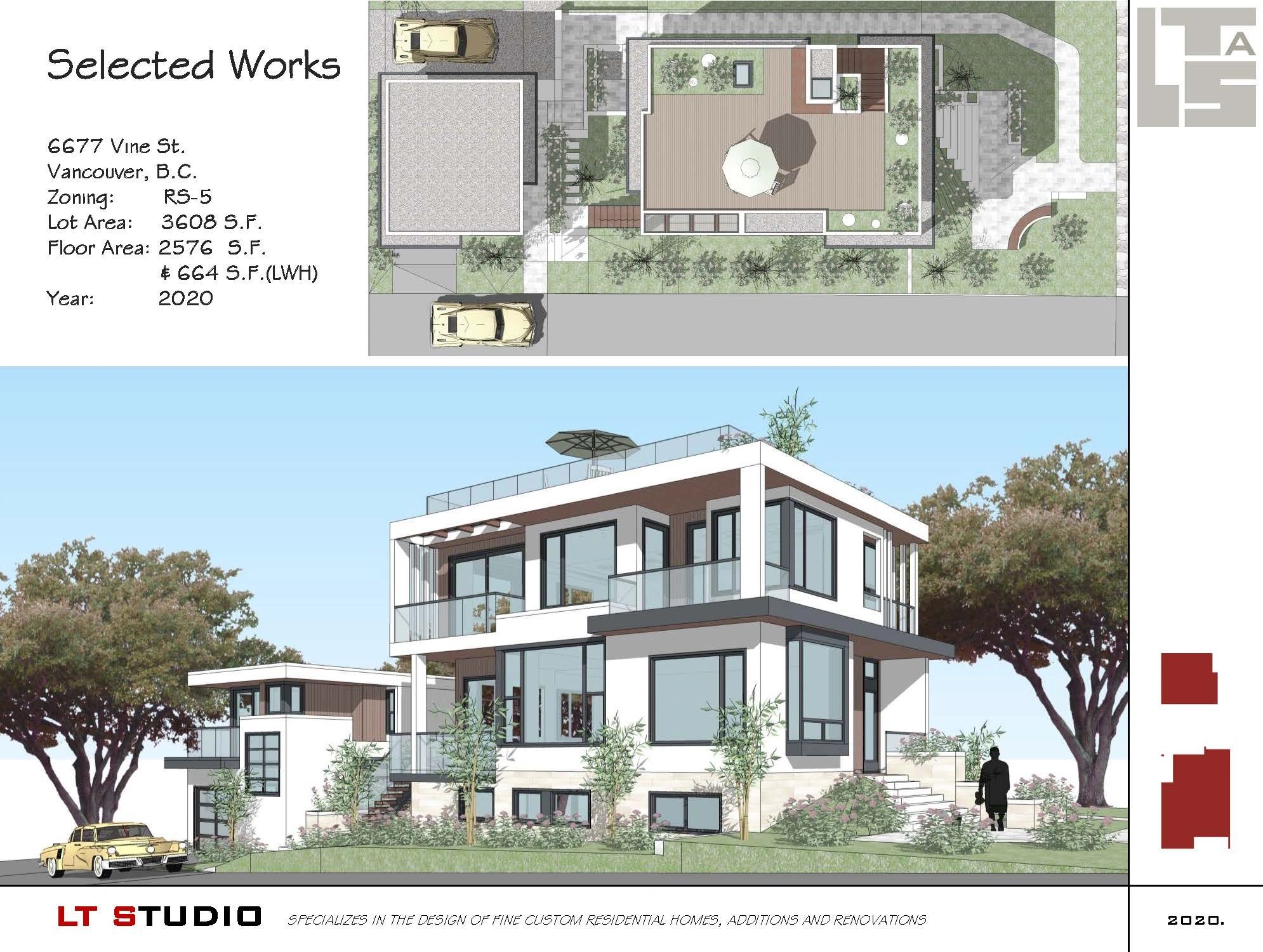 項目位於溫哥華西區一宗帶後巷側巷的轉角地塊,東側主街提供HOUSE主入口,南側巷為後巷屋車庫入口,及後巷屋入口通道。地塊南向相隔一個BLOCK便是一個城市公園。所以登上二層屋頂獲得公園景色的觀景視野便成了設計發展的一個構想目標。主HOUSE建築形體及外部的DECK空間沿南向的側LANE展開佈局,並與後巷屋/LWH在形式上構成了一個有機的建築組合。地塊雖然不大,但通過設計充分創造出了其作為轉角地塊的最大價值,同時為客戶提供了每個家庭成員都可以享用到的戶外休閒平台空間。